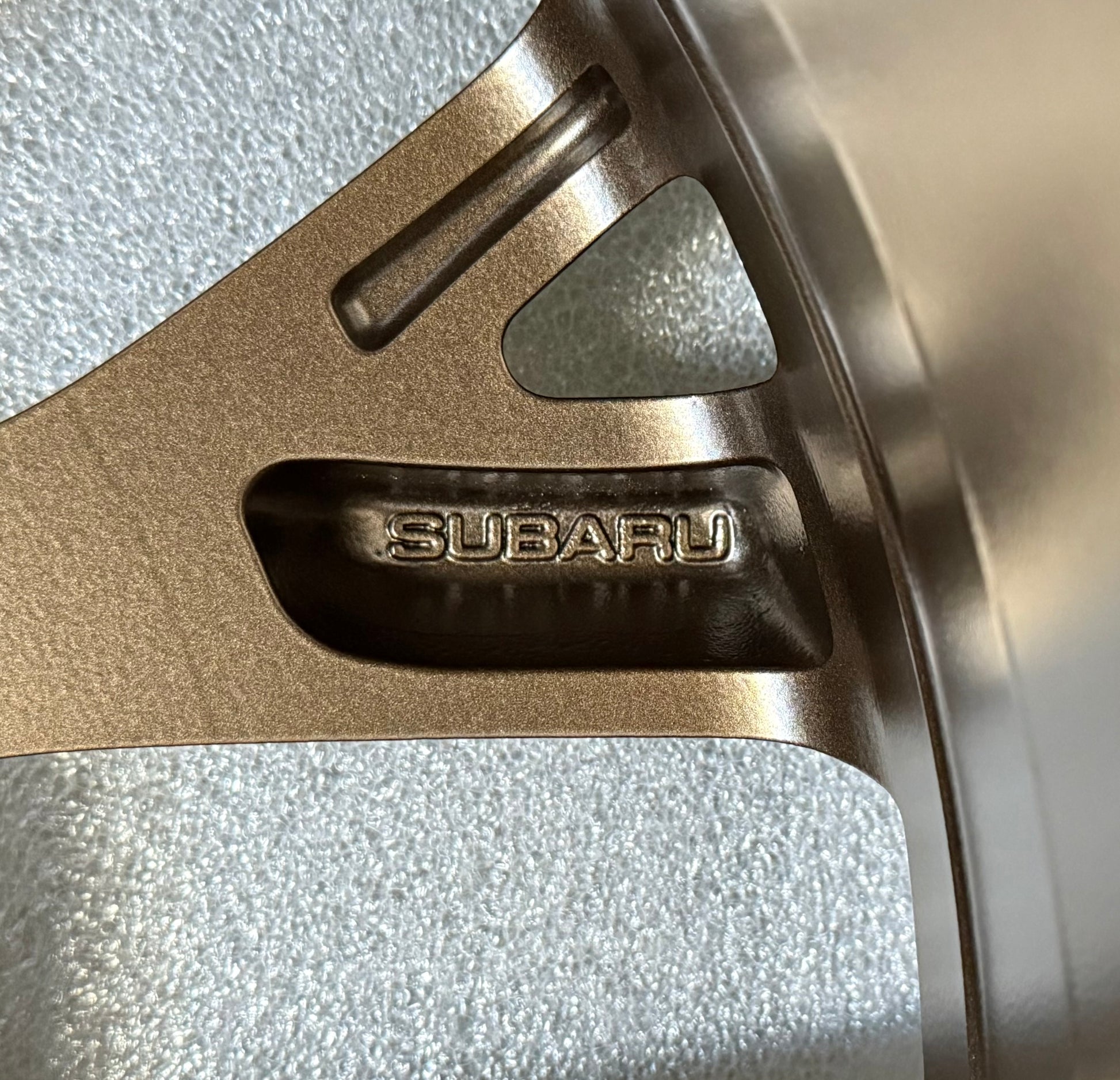 A squared set of (4) 19" Subaru STI Factory OEM Wheels in Satin Bronze Powder Coat Finish